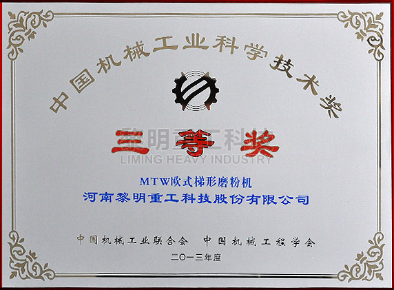 - MTW歐版梯形磨粉機(jī)中國機(jī)械工業(yè)科學(xué)技術(shù)獎 >>查看證書