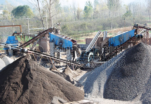大塊石料經(jīng)料倉由振動給料機均勻地送進鄂式破碎機進行粗碎,粗碎后的石料由膠帶輸送機送到反擊式破碎機進行進一步破碎;細碎后的石料由膠帶輸送機送進振動篩進行篩分,篩分出幾種不同規(guī)格的石子,滿足粒度要求的石子由成品膠帶輸送機送往成品料堆;不滿足粒度要求的石子由膠帶輸送機返料送到反擊式破碎機進行再次破碎,形成閉路多次循環(huán)。成品粒度可按照用戶的需求進行組合和分級,為保護環(huán)境,可配備輔助的除塵設備。為滿足客戶不同的加工需要,可配備圓錐式破碎機、除塵設備等。