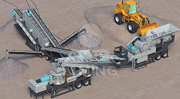 移動(dòng)生產(chǎn)線通常以外接電力電源為動(dòng)力來(lái)源,原料由GF系列振動(dòng)給料機(jī)均勻地送到C6X系列顎式破碎機(jī)或者CI5X系列反擊式破碎機(jī)進(jìn)行粗碎作業(yè),粗碎后的物料由皮帶輸送機(jī)送入到圓錐破碎機(jī)或者反擊式破碎機(jī)進(jìn)行進(jìn)一步破碎,細(xì)碎后的物料被輸送到S5X系列振動(dòng)篩進(jìn)行篩分,達(dá)到成品粒度要求的物料被由成品輸送帶輸出即為成品;未達(dá)到成品粒度要求的物料從振動(dòng)篩返回制砂機(jī)或者圓錐破重新加工,形成閉路多次循環(huán)。成品粒度可按用戶的需求進(jìn)行組合和分級(jí)。