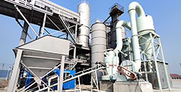 大塊物料經(jīng)顎式破碎機破碎到所需粒度30mm后,由提升機送至儲料斗,再由皮帶機將物料均勻定量連續(xù)地送入MTW175Z歐版磨的主機磨室內(nèi)進行研磨。粉磨后的物料被風(fēng)機氣流送入選粉機進行分級,在選粉機葉輪的作用下,不符合細(xì)度要求的物料落入磨室內(nèi)重新碾磨,合格的物料則經(jīng)空氣斜槽進入旋風(fēng)集粉器內(nèi),進行分離收集,經(jīng)排料裝置排出即為成品粉體。整個過程屬于閉路循環(huán)系統(tǒng),并在正負(fù)壓狀態(tài)下運行,配備以脈沖除塵器,使得生產(chǎn)現(xiàn)場干凈、整潔。