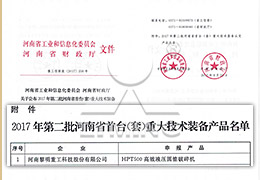 河南省首臺(套)重大技術(shù)裝備(HPT500)