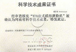 河南省科學(xué)技術(shù)成果獎(具有隔振結(jié)構(gòu)的懸輥磨粉機)