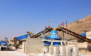 原料由鏟車送到原料倉,由給料機(jī)均勻地送給PE500×750顎式破碎機(jī),顎破和圓錐破共用一條皮帶,生產(chǎn)的料由主皮帶送給3YZS1860振動(dòng)篩,原砂直接分離,大料返回HST100單缸液壓圓錐破碎機(jī)進(jìn)行再加工,小于3cm的由VSI9526制砂機(jī)處理,出料由4YZS1848振動(dòng)篩篩分,出四種成品料。
