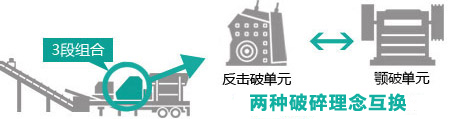 一種車身為4種機型通用,喂料單元互換系統(tǒng)、破碎單元互換系統(tǒng)和篩分單元互換系統(tǒng),只需再投資單機設備成本,短時間內(nèi),即可在同一車身上實現(xiàn)不同型號喂料單元互換系統(tǒng),反擊破與顎破互換系統(tǒng),不同型號振動篩互換系統(tǒng),整機各系統(tǒng)之間的匹配,適應場合更廣泛,破碎功能更強,客戶的消費品得到較大體現(xiàn)。該模塊中配置可選全車載皮帶機。