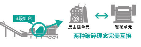 給料單元互換系統(tǒng)和破碎單元互換系統(tǒng),只需再投資單機設備成本,短時間內,礦區(qū)現(xiàn)場即可在同一車身上實現(xiàn)不同型號給料單元互換系統(tǒng),反擊破與顎破的互換系統(tǒng),整機各系統(tǒng)之間的準確匹配,適應場合更廣泛,破碎功能更優(yōu)良,客戶的消費品得到增值。