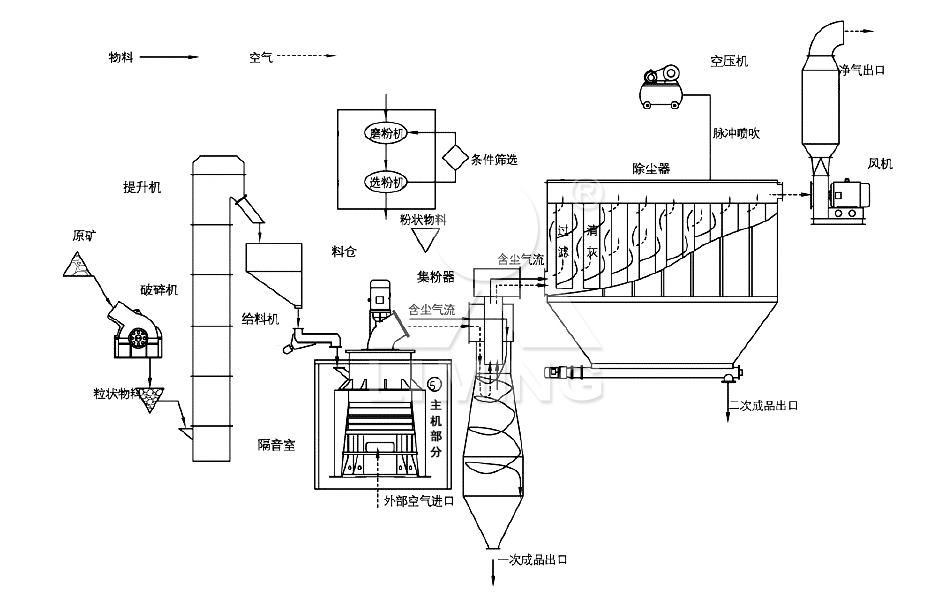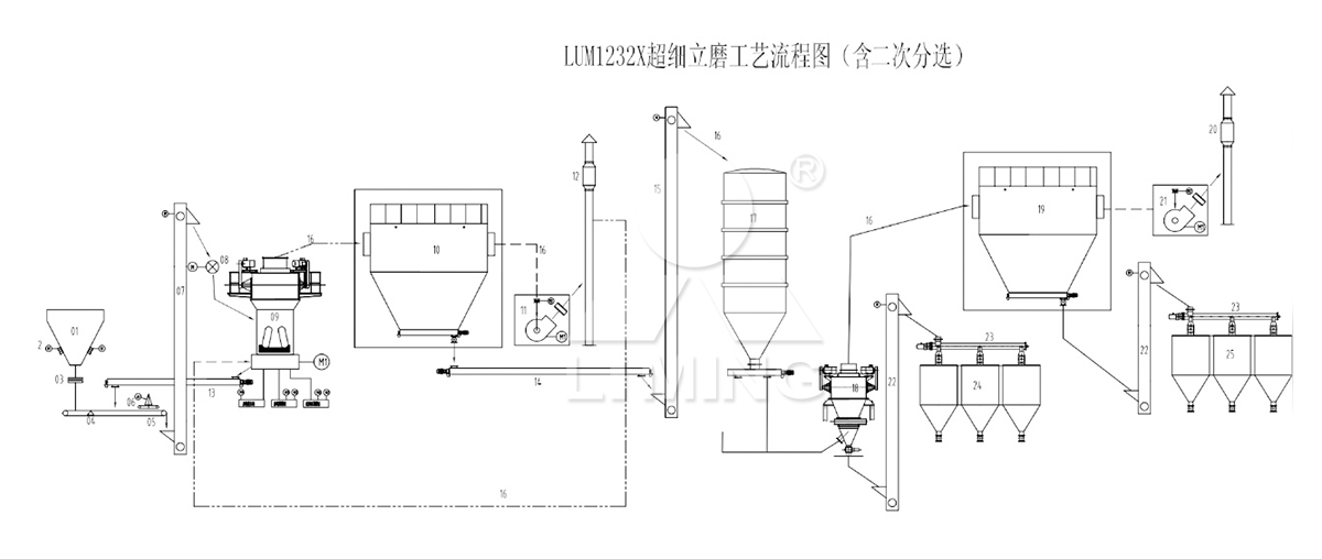 1可直接粉磨生產(chǎn)650目的重鈣,通過增加二次分級裝置,可生產(chǎn)1500目的超細(xì)重鈣,細(xì)可達(dá)2500目。