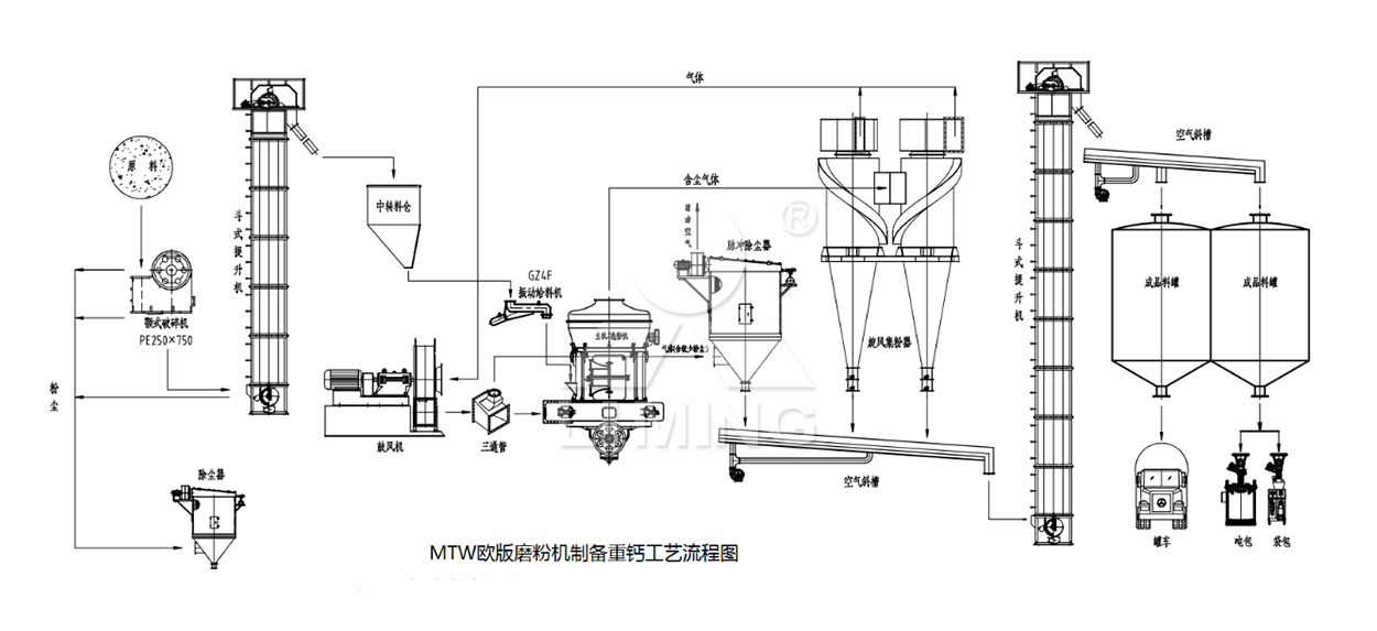 重質(zhì)碳酸鈣是以天然方解石、大理石、白云石或白堊為原料,經(jīng)機(jī)械設(shè)備粉磨和分級后達(dá)到一定細(xì)度的粉狀產(chǎn)品。國內(nèi)重鈣資源大多品質(zhì)優(yōu)良、純度高、白度高,一般不需經(jīng)過浮選或其它除雜工藝,僅需粉磨分級即可。重鈣加工主要有干法和濕法兩種,從實(shí)際應(yīng)用來看,3250目以下的產(chǎn)品,一般以干法生產(chǎn)為宜;3250-6000目的產(chǎn)品,通常選擇濕法生產(chǎn)。